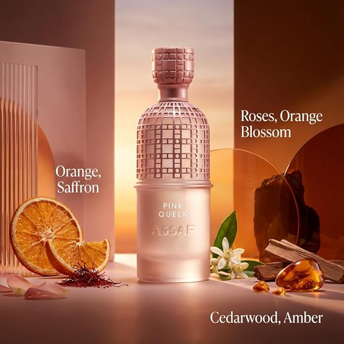 يعكس عطر بينك كوين من بيت العطور عساف رؤية أنثوية فاخرة تمزج الدفء بالرقة في توليفة ملكية أنيقة.